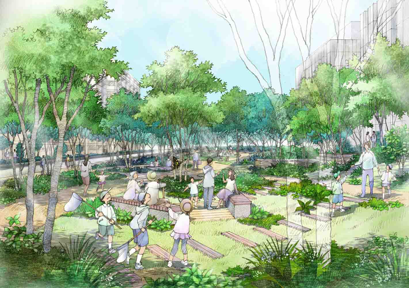 緑道のイメージスケッチです。